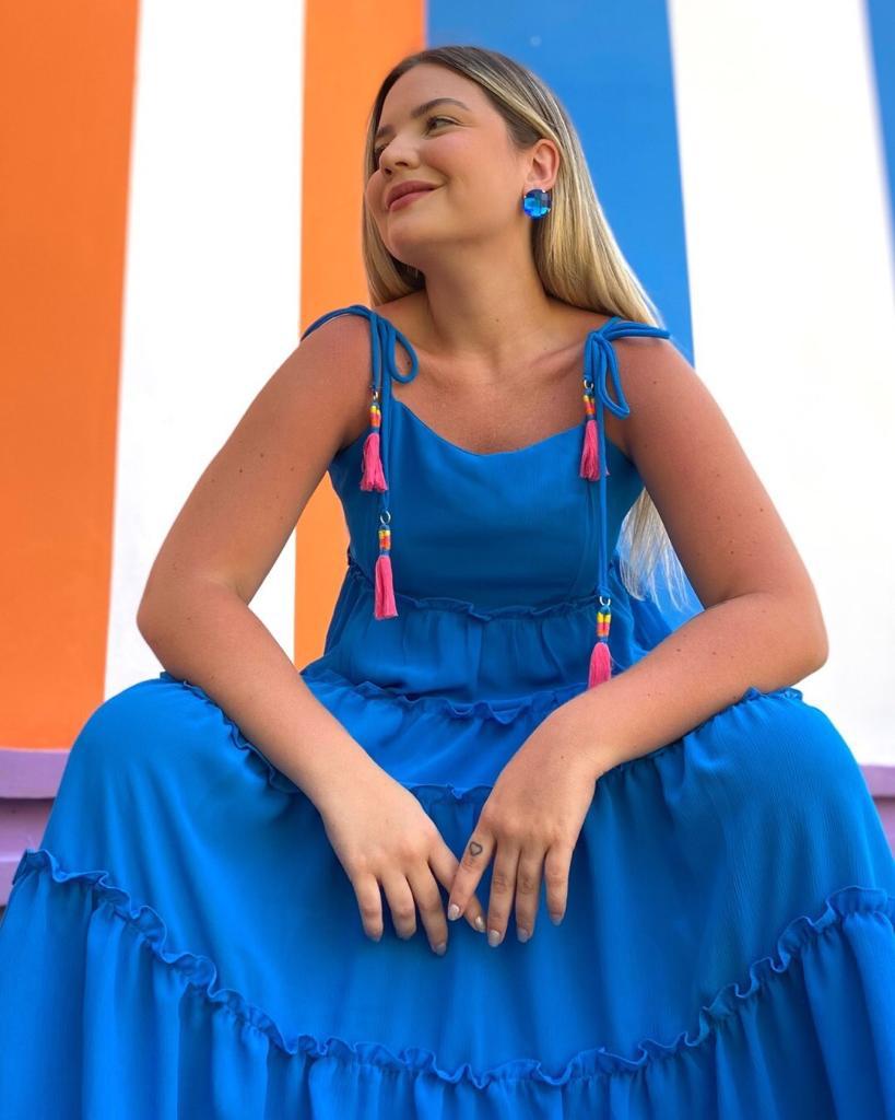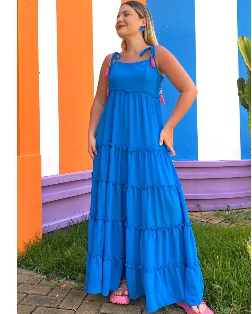 Blue long dress with knot detail.