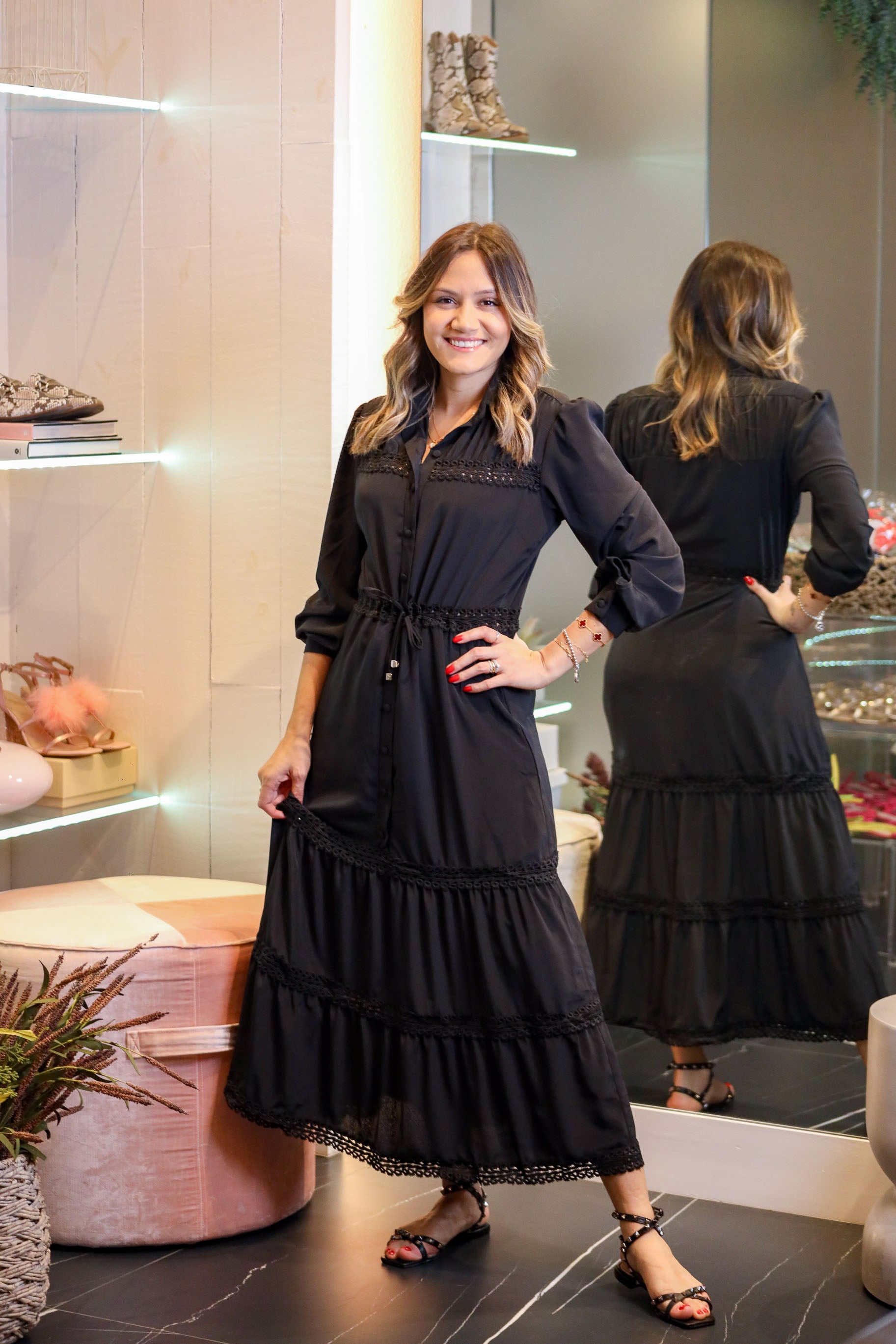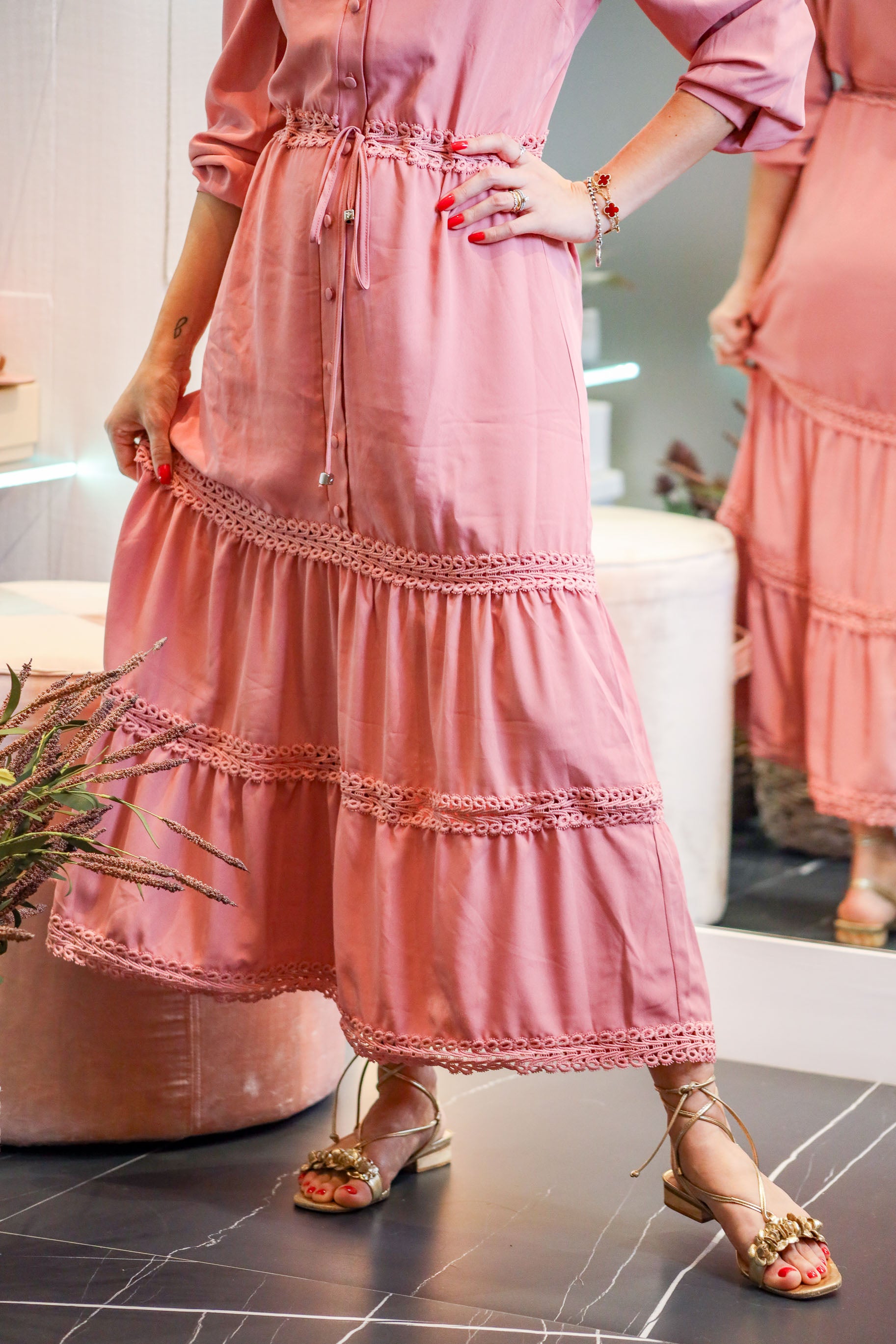 Crepe chiffon fabric midi dress, knot waist detail, long sleeve